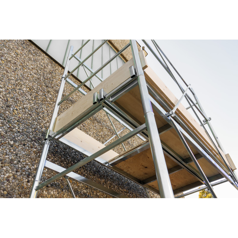 Ze względu na swoją wagę, rusztowanie najlepiej sprawdza się na dużych powierzchniach roboczych. Wszystkie elementy rusztowania są ocynkowane, dlatego nie ma problemów związanych z korozją. Idealne zarówno do prac wewnątrz budynków jak i na zewnątrz.